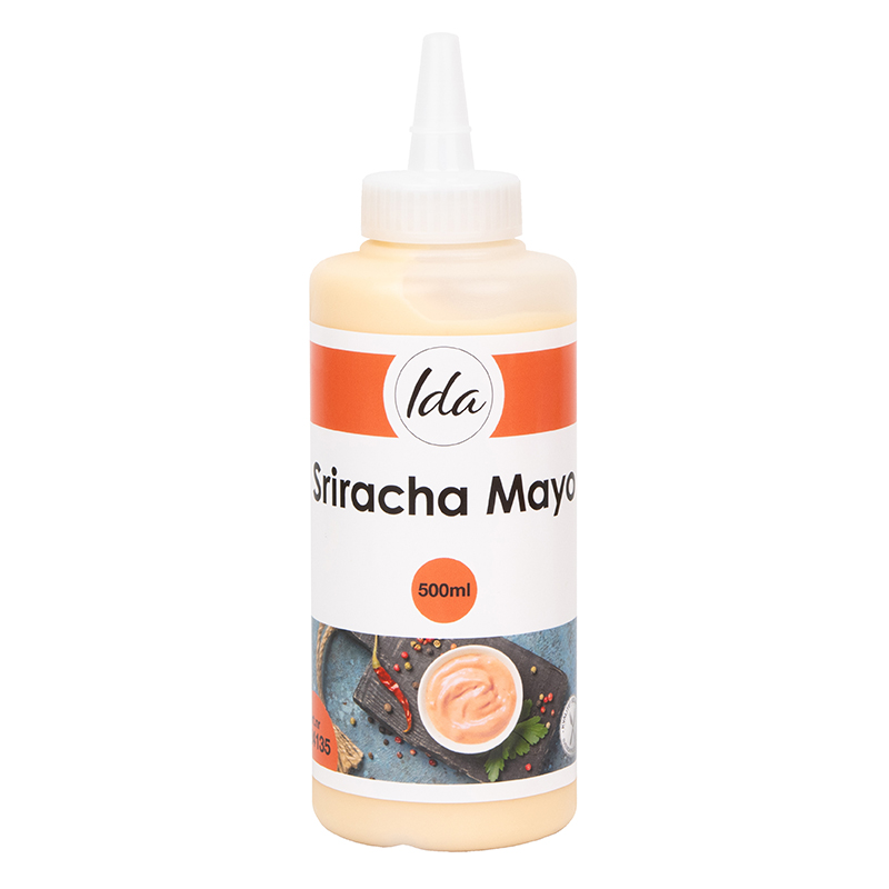 apsolja, vatten, srirachasås (röd jalapeno chili, vinäger, socker, salt, vitlökspulver, förtjockningsmedel (E415), vatten, naturlig arom, antioxidationsmedel (E300), konserveringsmedel (E211, E202)), ättika, modifierad stärkelse, socker, förtjockningsmedel (E415), salt, kryddor, konserveringsmedel (E202, E211).